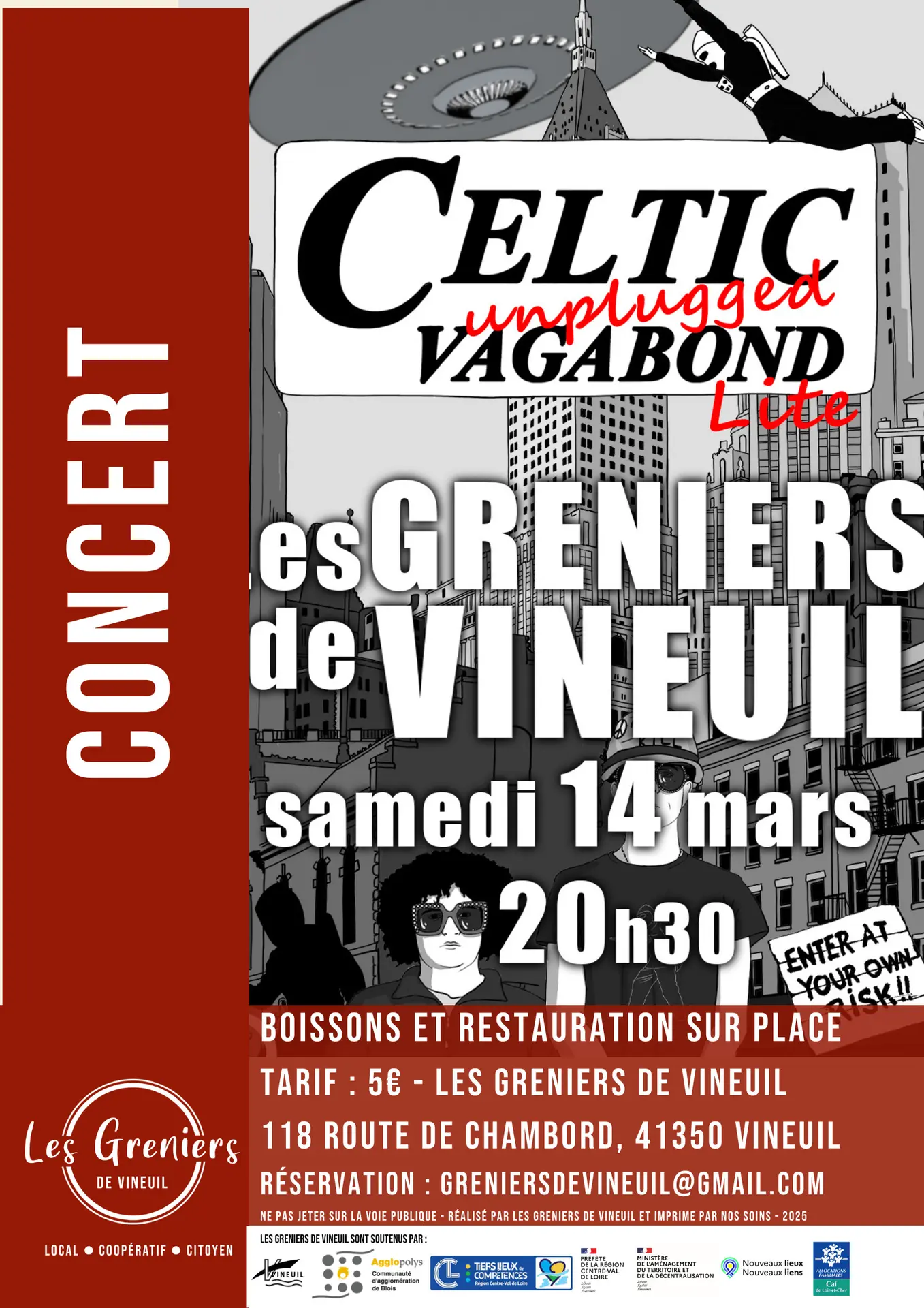 C’est un voyage entre le rock des 50 dernières années et la musique irlandaise. Bien qu’elle soit à l’origine de nombreux morceaux, Celtic Vagabond la réinvente en s’affranchissant de son cadre traditionnel pour lui donner une dimension plus personnelle.