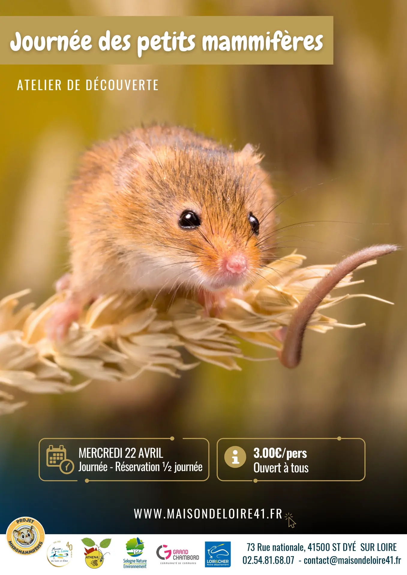 Découvrir les micromammifères, c'est plonger dans un univers souvent ignoré mais fascinant. Venez participer à notre journée spéciale consacrée aux petits mammifères, où vous aurez l'occasion d'en apprendre davantage sur ces créatures discrètes mais cruciales pour l'équilibre de notre écosystème. Vous découvrirez les habitudes de vie des musaraignes, campagnols et autres petits rongeurs et partirez sur leurs traces.