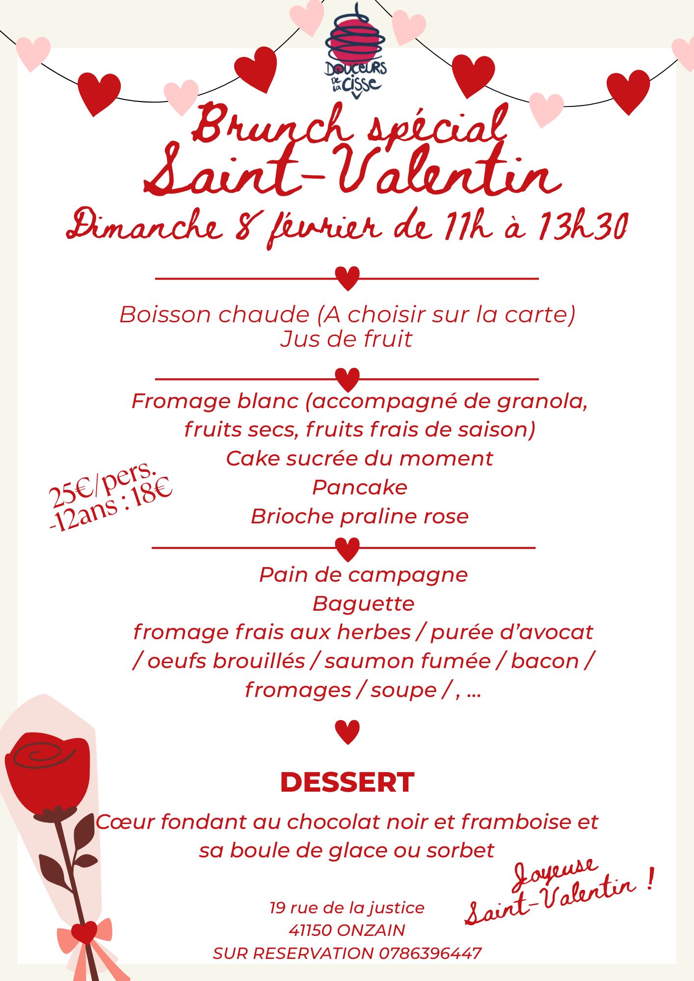 O'Douceur de la Cisse©O'Douceur de la Cissebrunch : 25€/ pers O'Douceurs de la Cisse 07 86 39 64 47Brunch spécial Saint-Valentin – Dimanche 8 février19 Rue de la Justice, 41150 Veuzain-sur-Loire13 €14Févr.Célébrez l’Amour au château de MeungProfitez de la réouverture du château pour partager un moment chaleureux en duo dans un lieu chargé d’émotions et d’histoire. Baladez-vous, échangez, riez et créez de précieux...Meung-sur-Loire13Févr.15Févr.Grimpe & Love avec Péka BlocDu 13 au 15 février, viens grimper en couple et on t’offre des boissons & des mignardises à partager le soir même ! À ton arrivée, pense à nous signaler que tu es...Blois300 €14Févr.Une Saint-Valentin d'exception au pays des ChâteauxUne excursion guidée disponible dès à présent, sur réservation uniquement. Offrez-vous une Saint-Valentin d’exception au cœur du Pays des Châteaux avec l’offre Duo Privilège,...Blois
