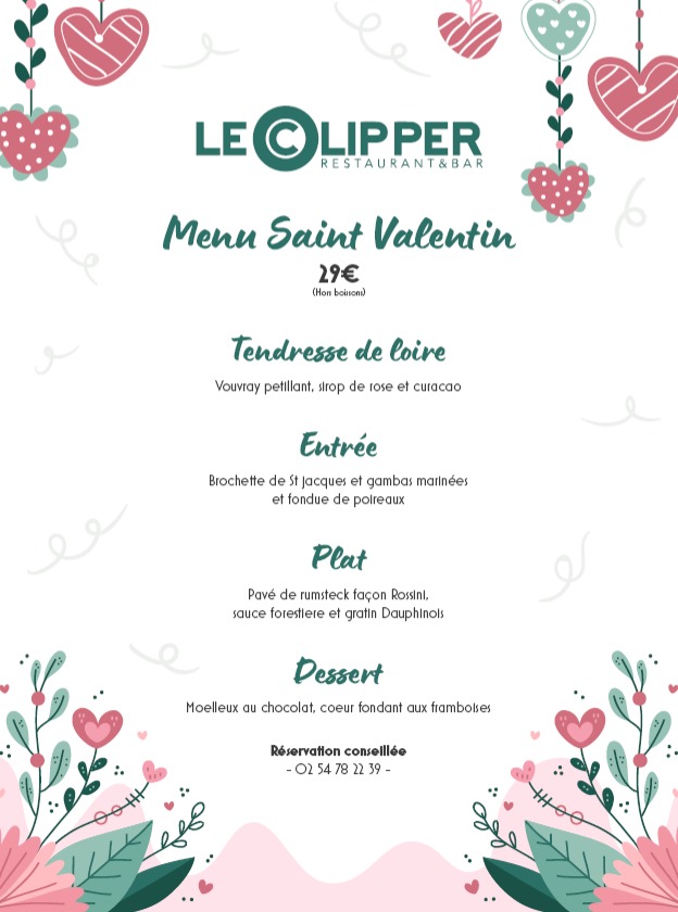 Les Burger d'Annie©Les Burger d'Annie79€/pers Chez Mamie d'Annie 09 79 11 83 722 Rue Saint Martin41000 BloisLa Creusille©La Creusille|Adrien Chambard72€/ pers (apéritif, vins et café compris) La Creusille 02 54 78 07 393 Quai Henri Chavigny 41000 Blois760405 306551756 851817182474494 2628851782990763422 N©Restaurant l'Oratoire à Blois75€/ pers L'Oratoire 02 54 78 05 361 Av. du Dr Jean Laigret 41000 Blois760391 22071377 319041558563858 1488460803790077952 N©Restaurant l'Hôte Antique à Blois65€/ pers L'Hôte Antique 02 54 74 39 105 Rue du Pont du Gast 41000 BloisRestaurant Amour Blanc©Restaurant Amour Blanc|Alexandre Moulard150€/ pers Amour Blanc 02 46 68 01 2026 Quai Villebois Mareuil 41000 BloisAstuce : prolongez la Saint Valentin en réservant à l’hôtelRestaurant Christophe Hay©Restaurant Christophe Hay|Alexandre Moulard310€ / pers Restaurant Christophe Hay 02 46 68 01 2026 Quai Villebois Mareuil 41000 BloisAstuce : prolongez la Saint Valentin en réservant à l’hôtelRestaurant La Maison©Restaurant La Maison45€/ pers La Maison 02 54 74 61 1021 Rue des Trois Marchands 41000 BloisHotel restaurant Le Medicis95€/ pers Le Médicis 02 54 43 94 042 allée François 1er 41000 BloisAstuce : prolongez la Saint Valentin en réservant à l’hôtelRestaurant Poivre Sel©Restaurant Poivre Sel|Yannick Le Bricquir52€/ pers Poivre & Sel 02 54 78 07 789 Rue du Chant des Oiseaux 41000 BloisRestaurant le Clipper Blois©Restaurant le Clipper Blois29€/ pers Le Clipper 02 54 78 22 3915 Pl. Louis XII 41000 BloisRestaurant Mimosa à Blois ©Restaurant Mimosa à Blois |Yannick Le Bricquir42€/ pers Mimosa 02 54 78 04 8718 Rue Denis Papin 41000 BloisBouillon 300G à Blois©Bouillon 300G à Blois|Yannick Le BricquirA partir de 32€/ pers Bouillon 300 grammes 02 54 56 81 816 rue du poids du roi 41000 BloisOblend Restaurant A Blois©Oblend Restaurant A Blois55€/ pers O'Blend 02 54 79 89 256 Av. du Dr Jean Laigret 41000 Blois