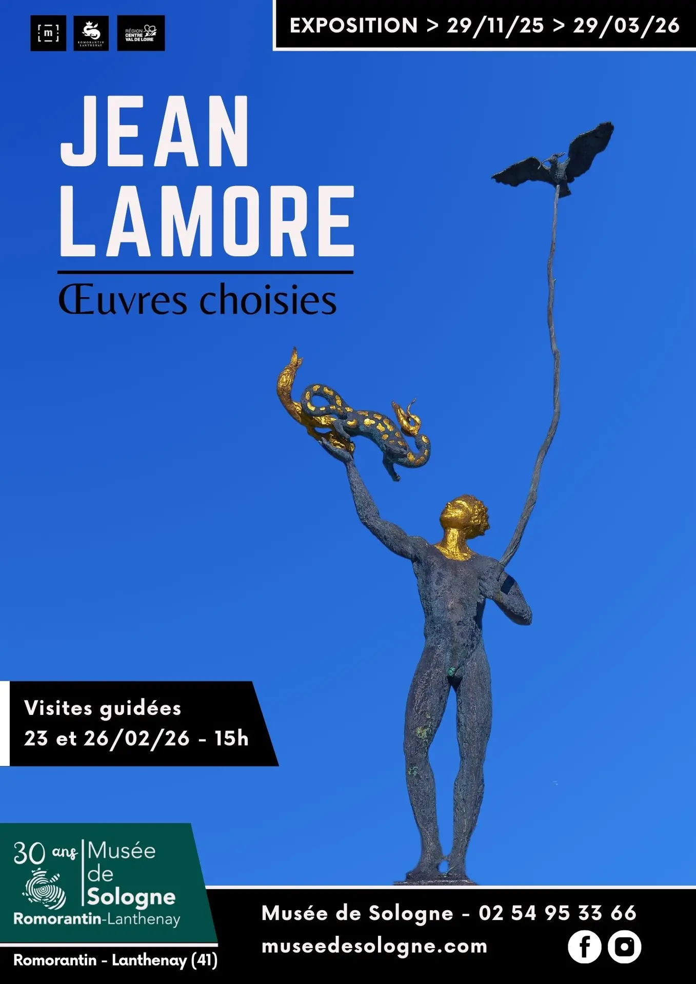 Du 28 novembre 2025 au 29 mars 2026, le musée de Sologne consacre à Jean Lamore une exposition monographique qui donne à voir la richesse et la diversité de son travail, sa relation au monde, aux grandes et petites choses qui le composent mais aussi son intimité de créateur.