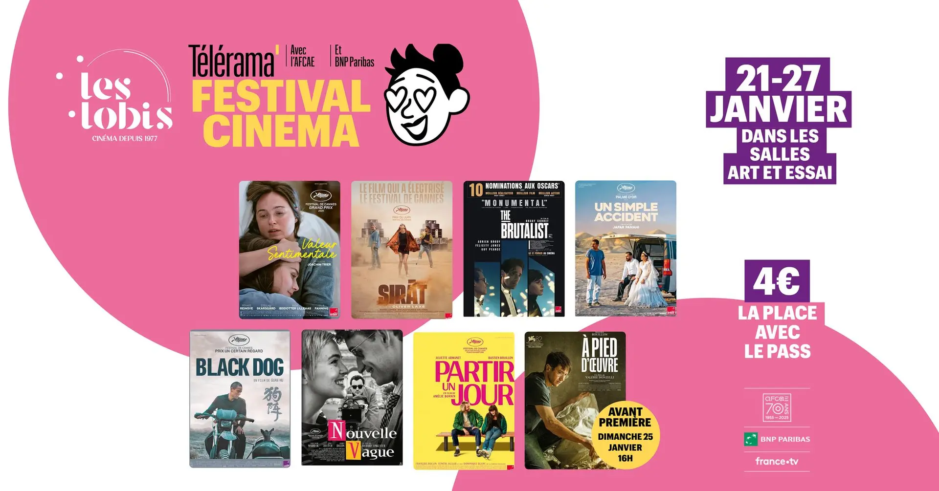 Télérama et l’Association française des cinémas d’art et d’essai (Afcae) organisent, du 21 au 27 janvier 2026, la 28ᵉ édition du Festival cinéma Télérama, en partenariat avec BNP Paribas et France Télévisions.
