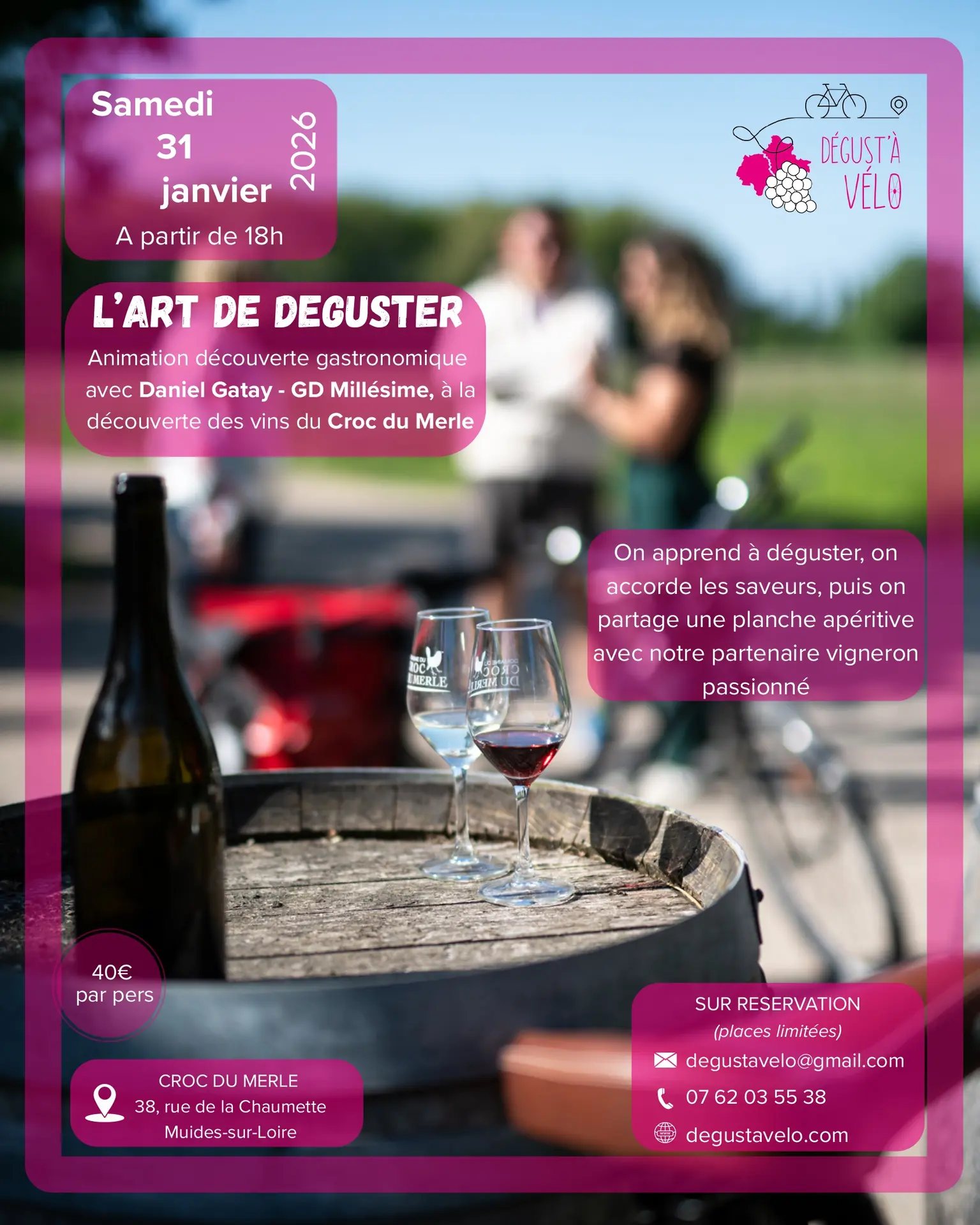 Réservation OBLIGATOIRE (places limitées) par mail : degustavelo@gmail.com ou par téléphone 07 62 03 55 38